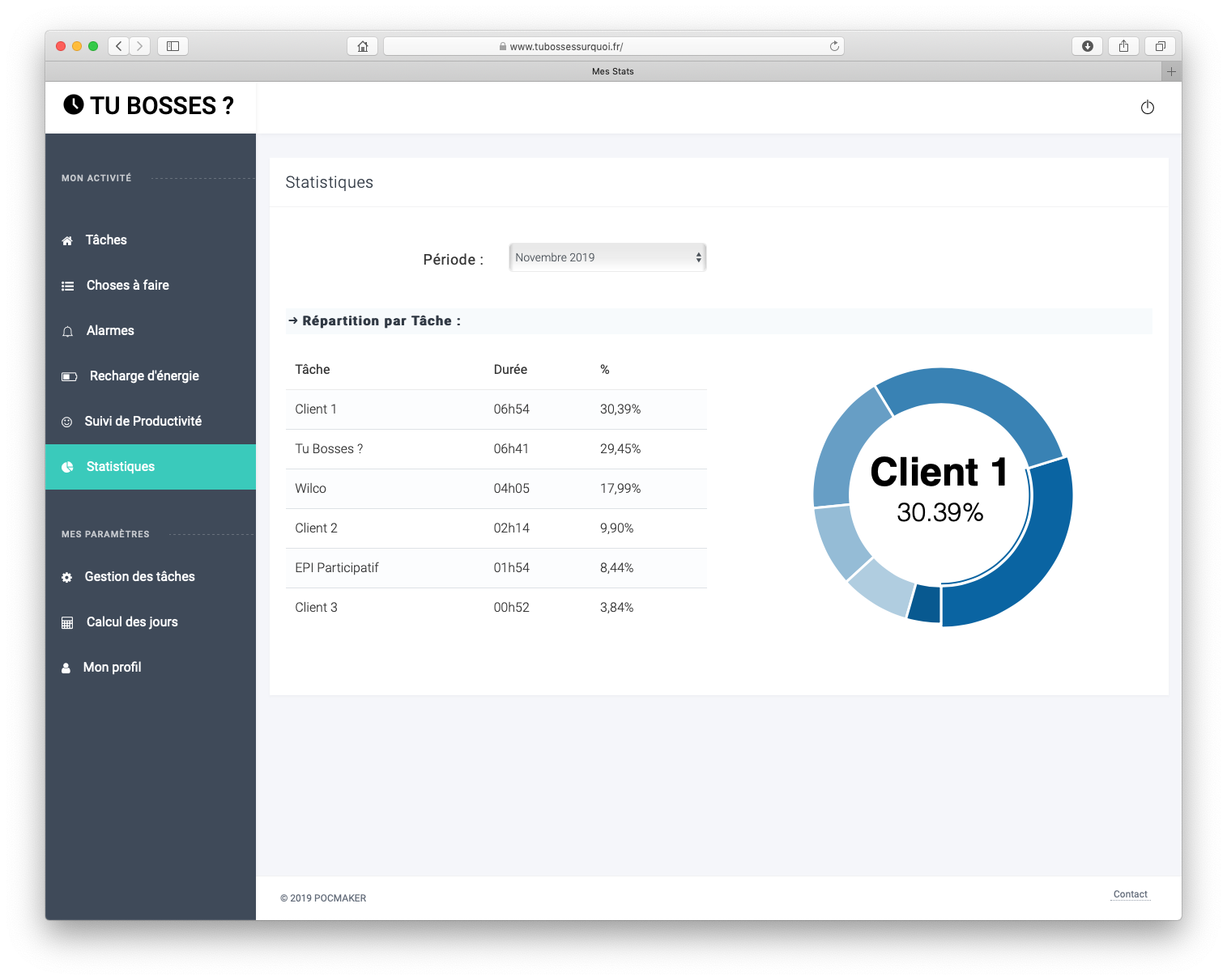 Parce qu'on travaille toujours sur plein de tâches en même temps, il est souvent compliqué de connaitre le temps passé sur chacune d'entre-elles. C'est pourquoi nous avons mis en place un outil permettant de mesurer ce sur quoi on travaille dans la journée.